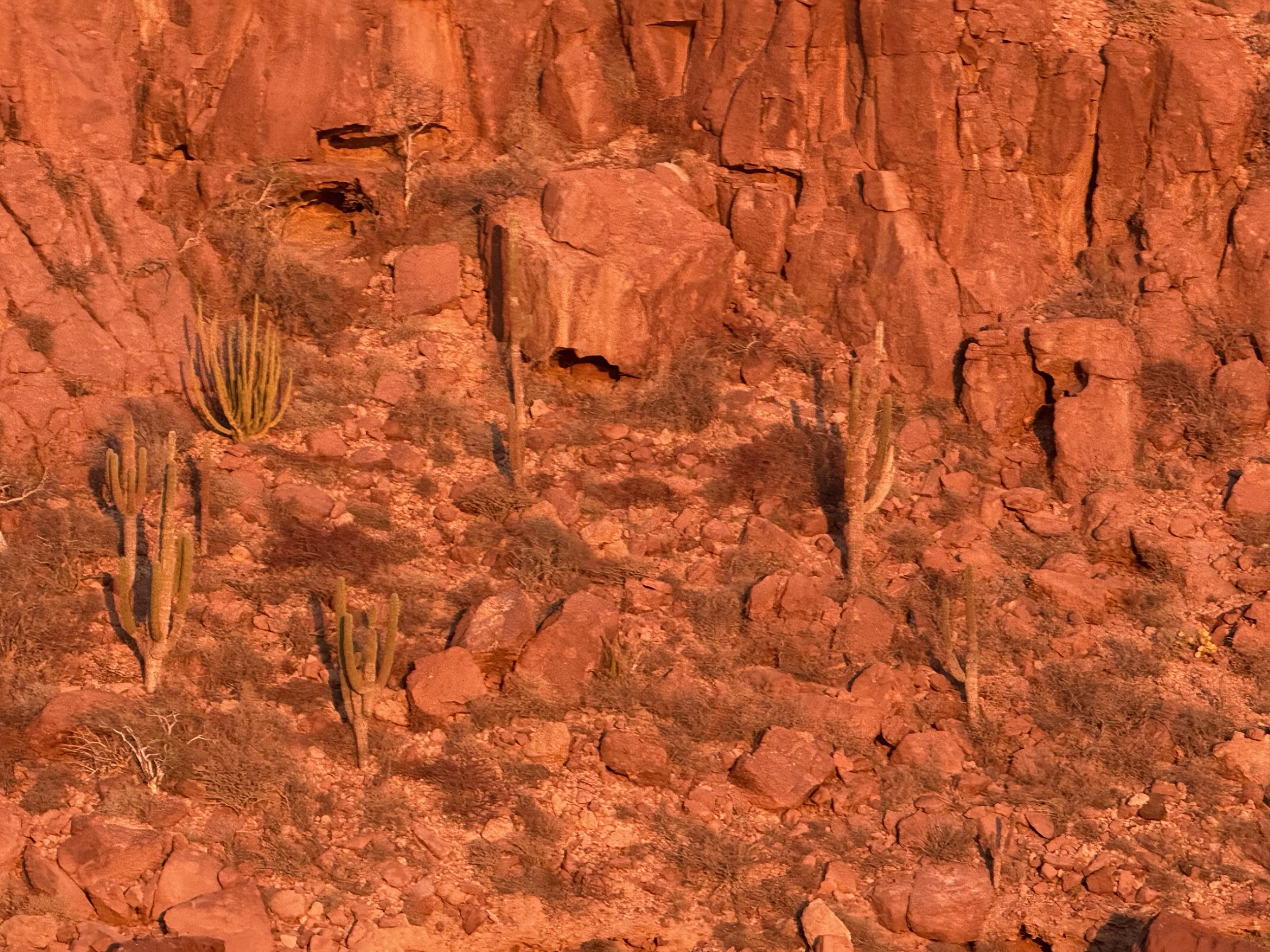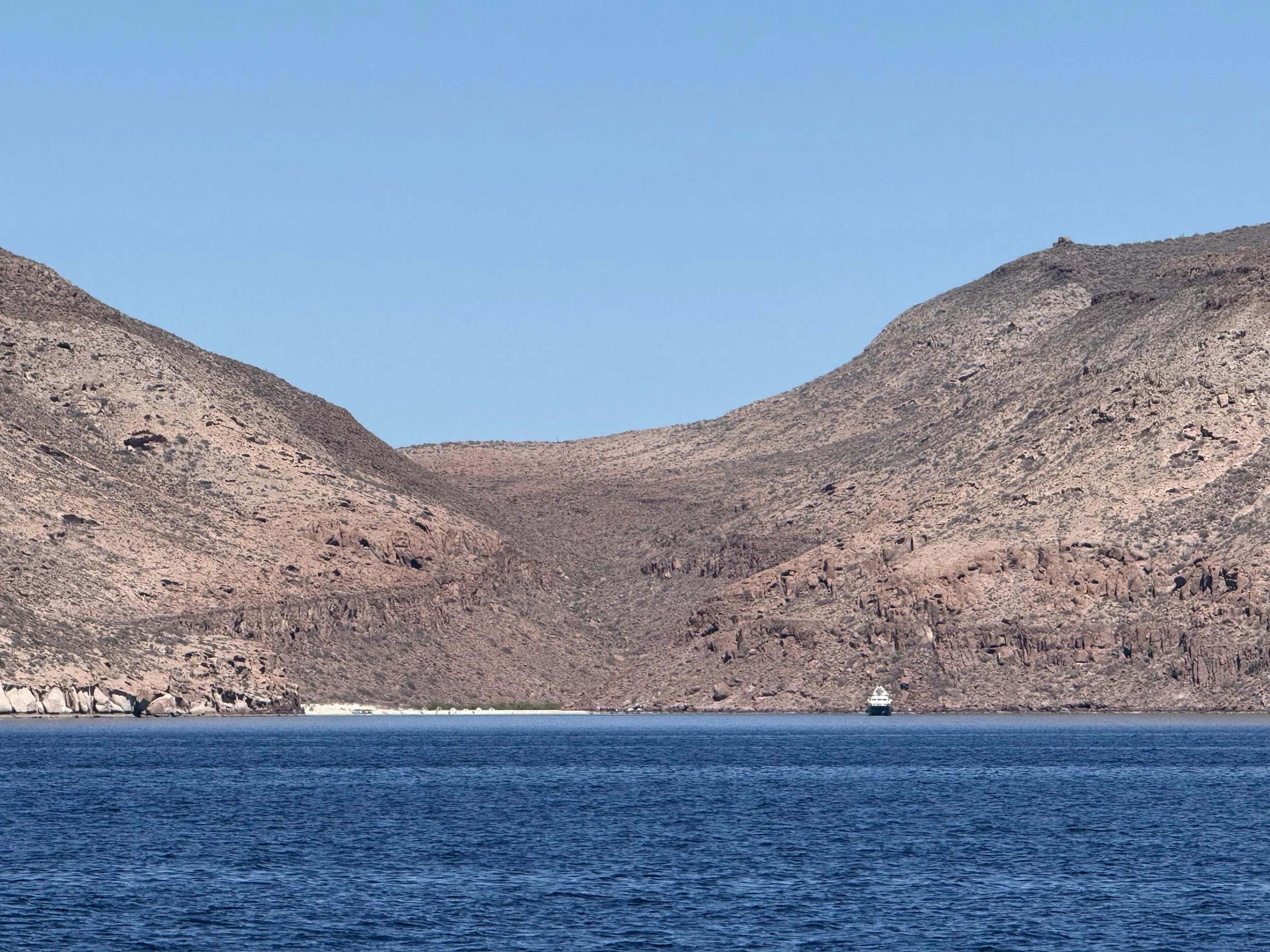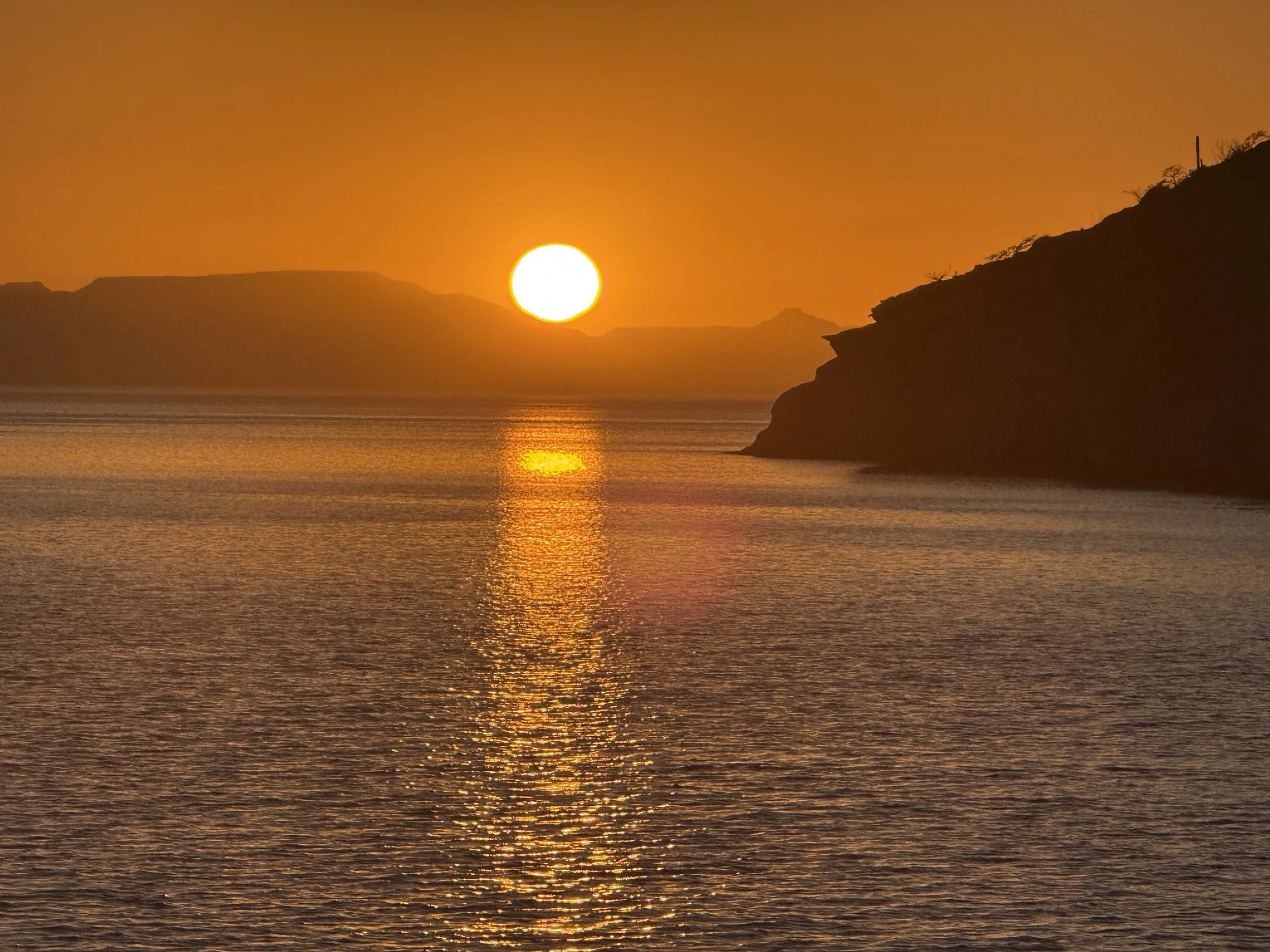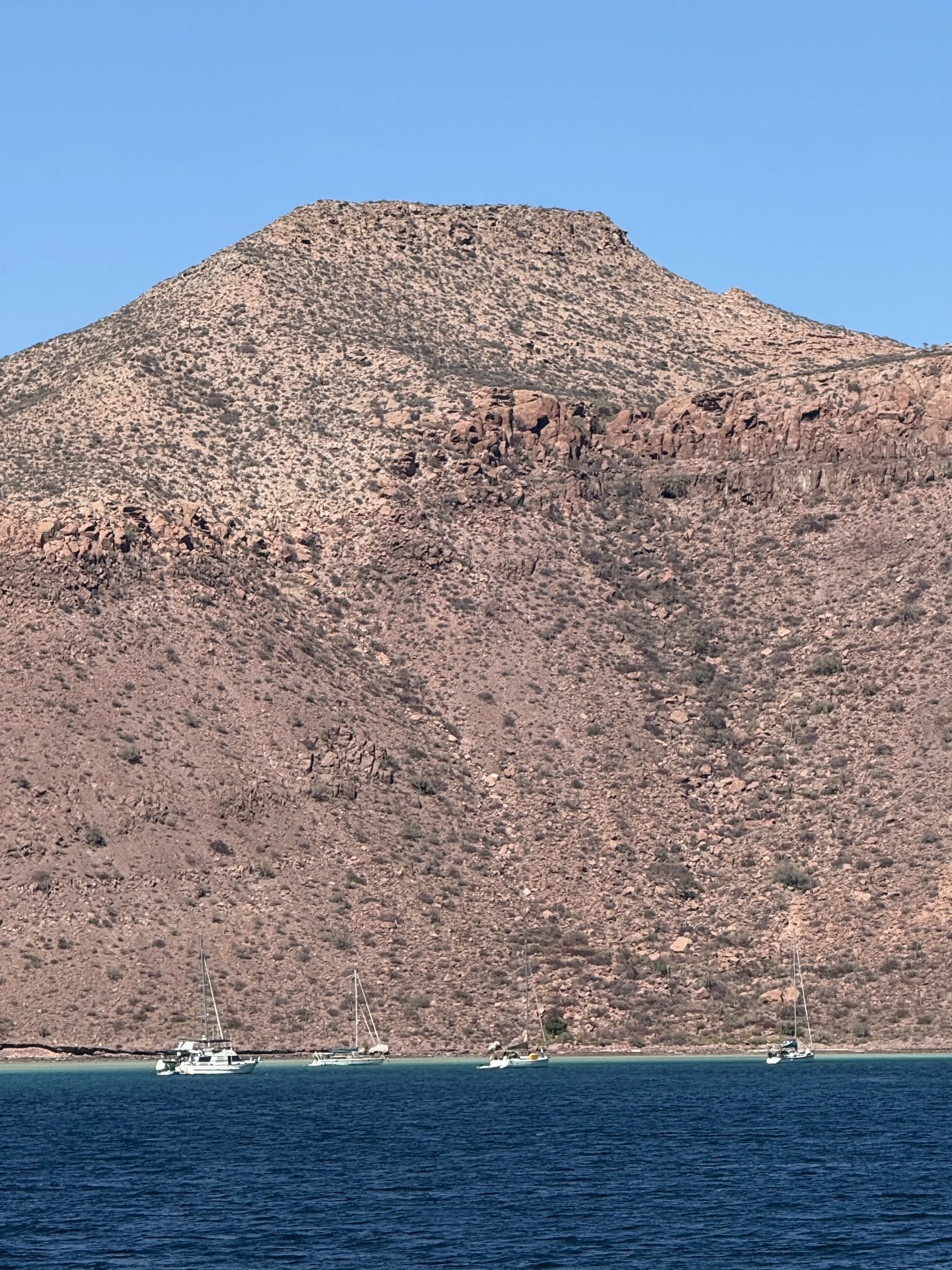 The hike was steep and rocky but very doable. The view from the top was phenomenal with perspectives of the whole island including the beautiful arc of the Playa San Francisquito. There was a monument to Mary and a place to document your experience with a pencil and notebook at the top. In fact there was a pile of notebooks under a protective rock. I literally just realized as I am typing this that Alex wrote “Sund-25” and “Come on you FCC Cincinnati!”. I wrote “Unbelievable. Stunning. Thank you for sharing this place with our family. Most beautiful sunsets. It’s like a painting - vibrant at times, pastel at times. Life is good.” As we hiked further along, we had to focus because there was a breathtaking drop straight down rocky cliffs on the east side of the island out to the Sea of Cortez. We eventually got to a point where the path was less clear and we needed to hike over giant rocks. I climbed ahead of the group and checked it out but didn’t feel good about taking Alex that direction so we returned down the cliff in the same direction we came from. What an amazing hike! Unbelievable!