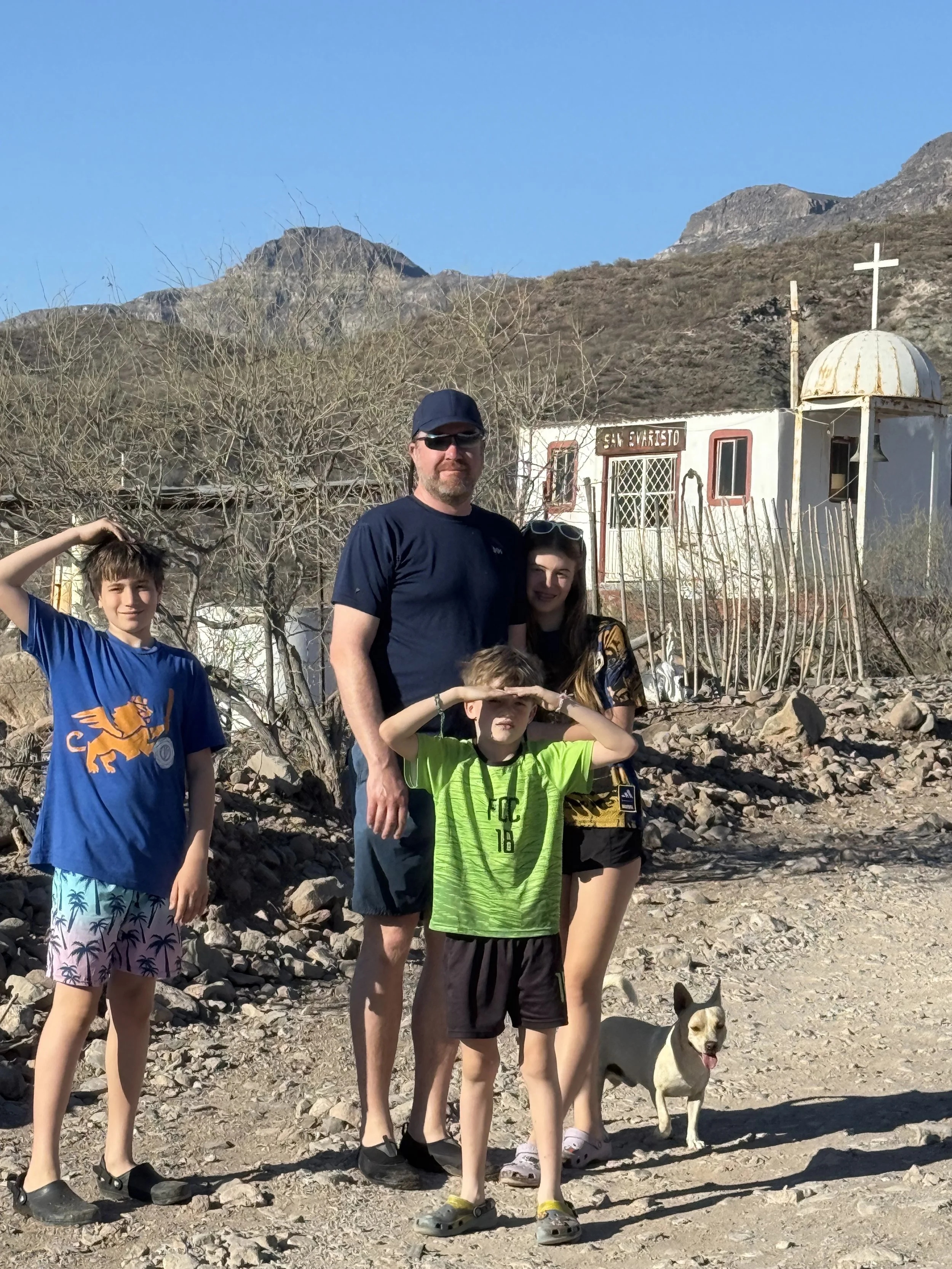 We saved some money on the flight by spending the first night in Lexington, KY. One of the kids wasn’t feeling good that night and I spent the night imagining all of the scenarios for the next day - delay by one day, divide and conquer or forge ahead with a sick kiddo - so not a lot of great sleep. Thankfully, he woke up feeling better and we headed to the airport before dawn. From Lexington, we flew to Atlanta then San Jose del Cabo, Mexico. John was kind enough to pick up the whole family at the airport for the 3 hour drive to La Paz. He asked which route we wanted to take and we requested the scenic route! We had tacos in a tourist town called Los Barriles.