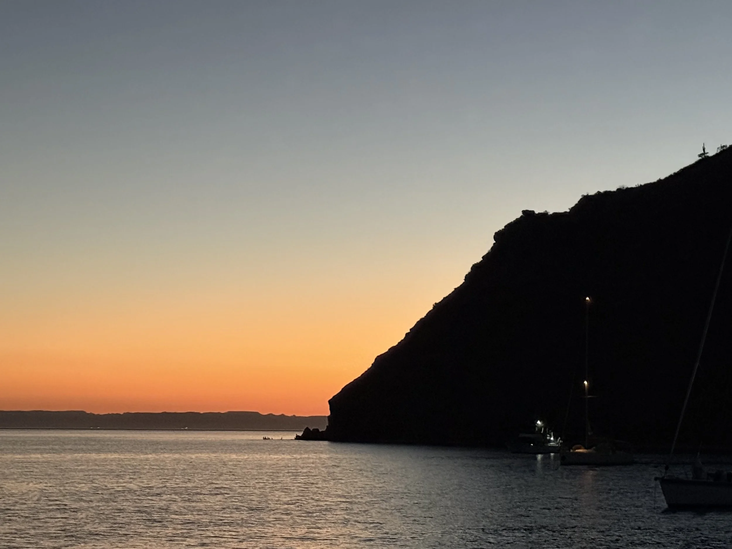 We saw the most amazing sunsets in Mexico, the kind where you couldn’t look away and sat for an hour watching it change. I will share them side by side for a vote after I publish them all. Let me just say that when I saw this sunset, I thought it was the most beautiful sunset I had seen. We were facing towards the mountains on the Baja Sur mainland, the clouds were very whispy and the colors were stunning. We saw animals jumping and heard animal sounds. We also heard a repetitive whistling noise, but we couldn’t place it as any particular animal and we did not see anything that could be the source of the sound. We figured it was just the canyons playing tricks on us and headed to make dinner as it got dark.